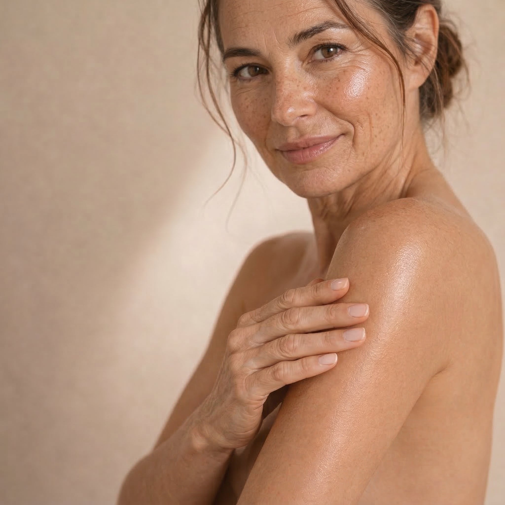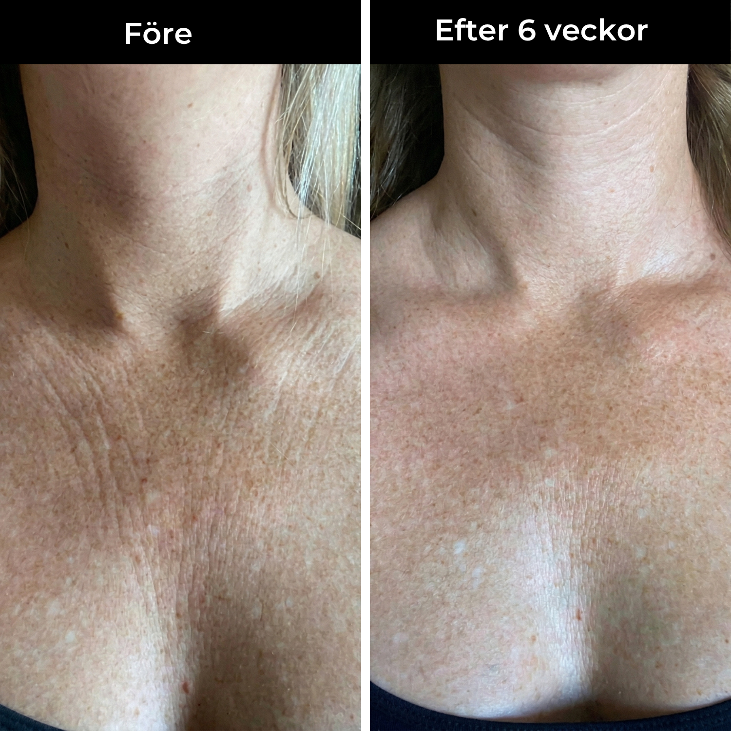 Områder som arme, hals, bryst og hænder udsættes dagligt for sol og aldring – og uden den rette pleje bliver huden tyndere, slapere og mere ujævn over tid.