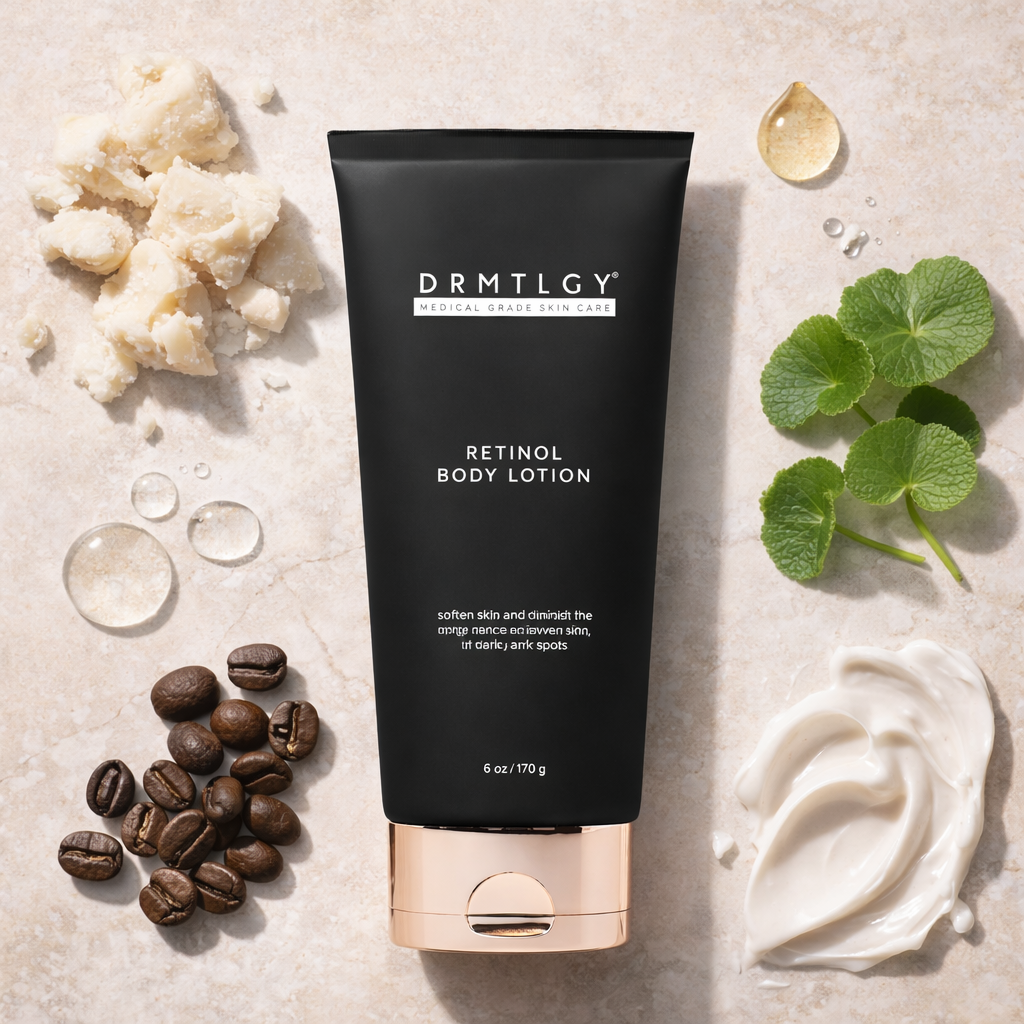 Det skyldes, at hudens naturlige cellefornyelse sænkes med alderen. DRMTLGY Retinol Body Lotion er udviklet til at modvirke netop dette.